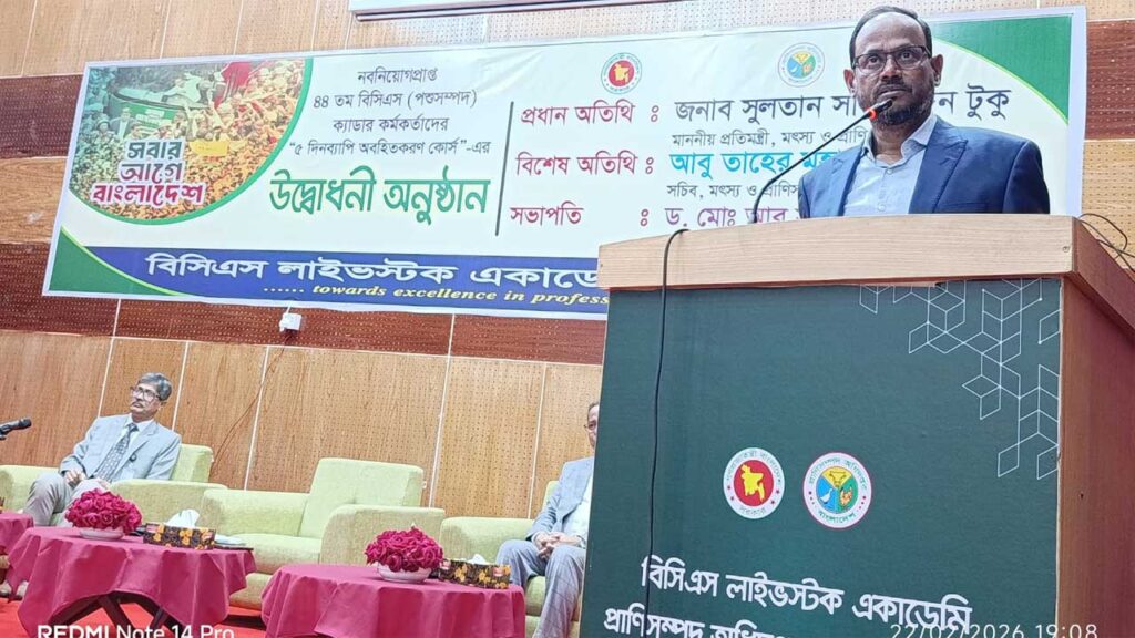 গত রোববার (২২ ফেব্রুয়ারি) সন্ধ্যায় সাভারের সিঅ্যান্ডবি এলাকায় অবস্থিত বিসিএস লাইভস্টক একাডেমি প্রাঙ্গণে নবনিযুক্ত ৪৪তম বিসিএস (প্রাণিসম্পদ) ক্যাডার কর্মকর্তাদের পাঁচ দিনব্যাপী অবহিতকরণ কোর্সের উদ্বোধনী অনুষ্ঠানে প্রধান অতিথির বক্তব্যে প্রতিমন্ত্রী এসব কথা বলেন।